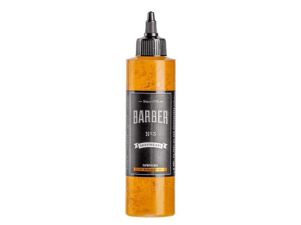 Holící gel MARMARA Barber No. 3 Shaving gel je průhledný s osvěžující vůní s jantarovými tóny, umožňuje pohodlné a přesné holení. Změkčuje vousy, usnadňuje skluz břitu a zanechává pokožku svěží a chráněnou.
